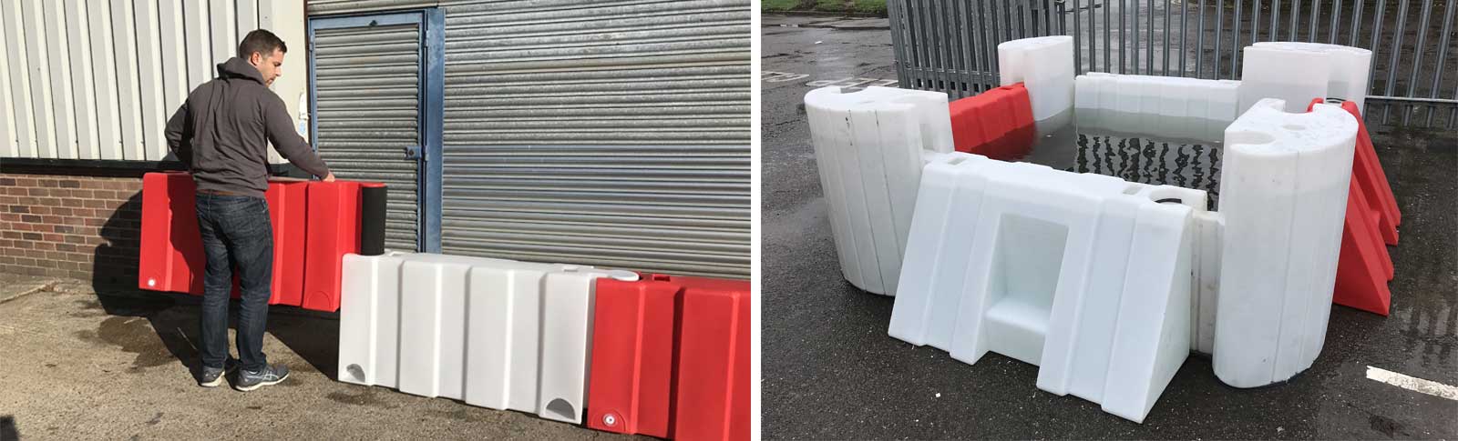 - 1.2-metre long self-filling or pre-filled flood barrier units